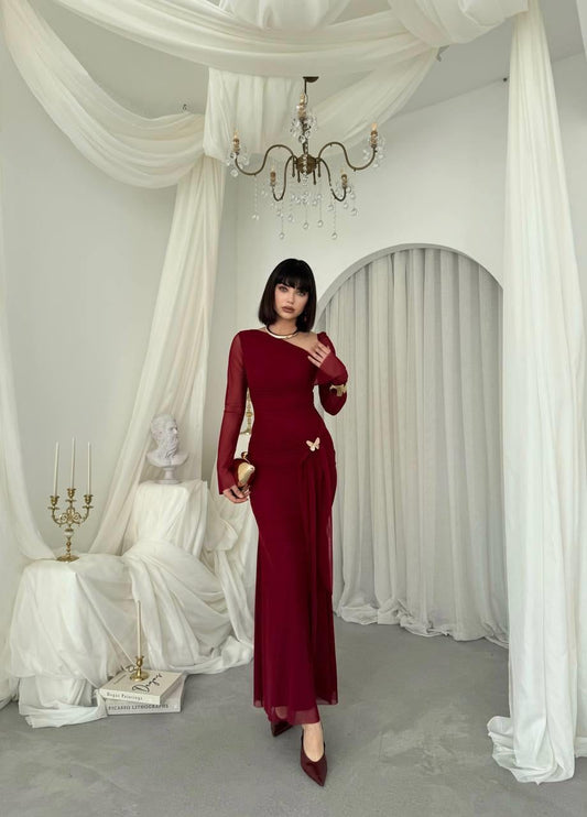 Long evening ruffled lace dress