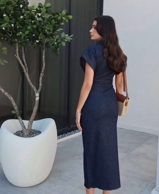 Stylish denim midi dress