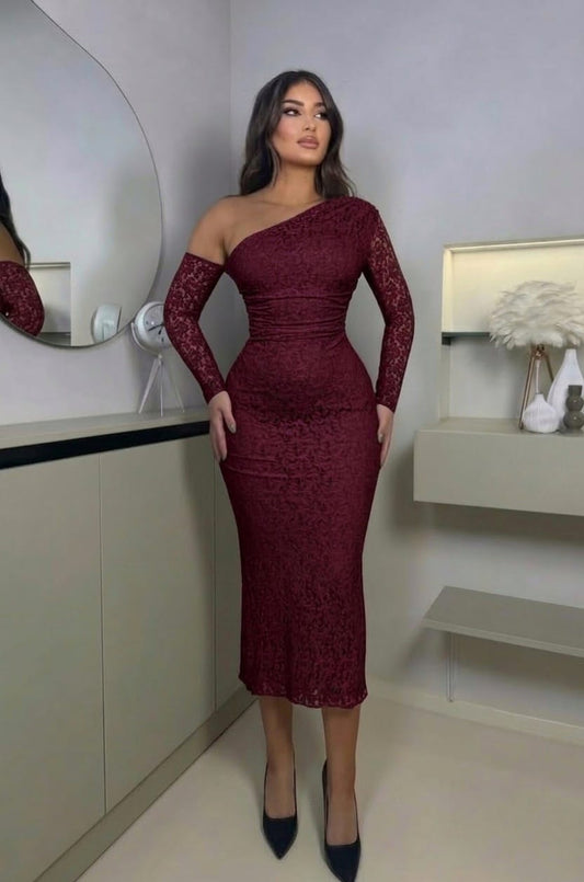 One-shoulder lace midi dress