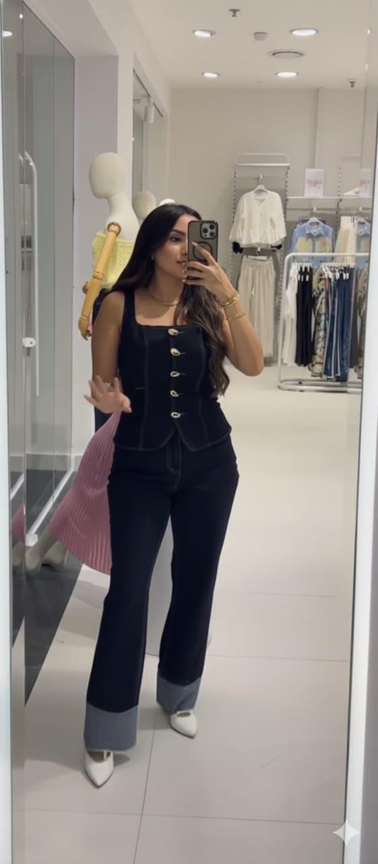 Chic denim: Wide-leg jeans with contrasting hems