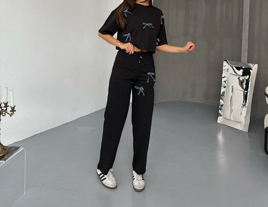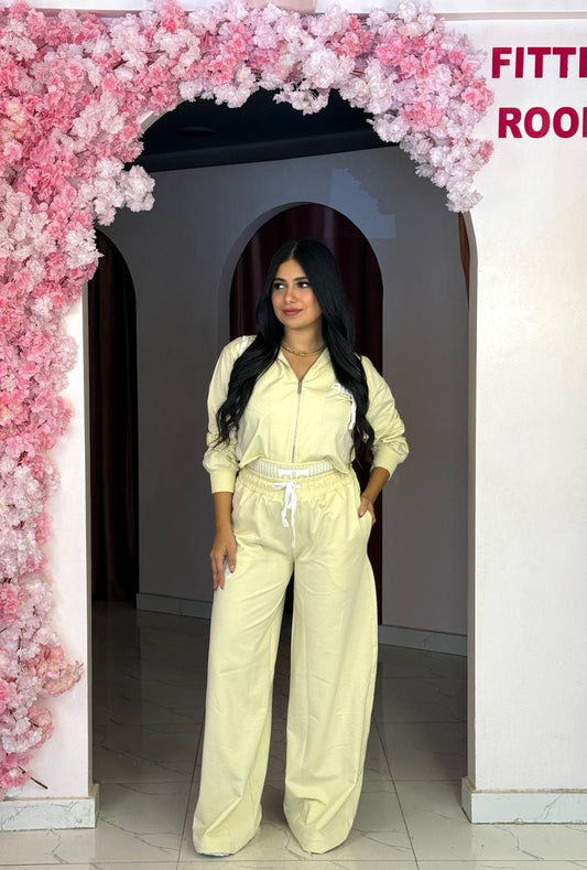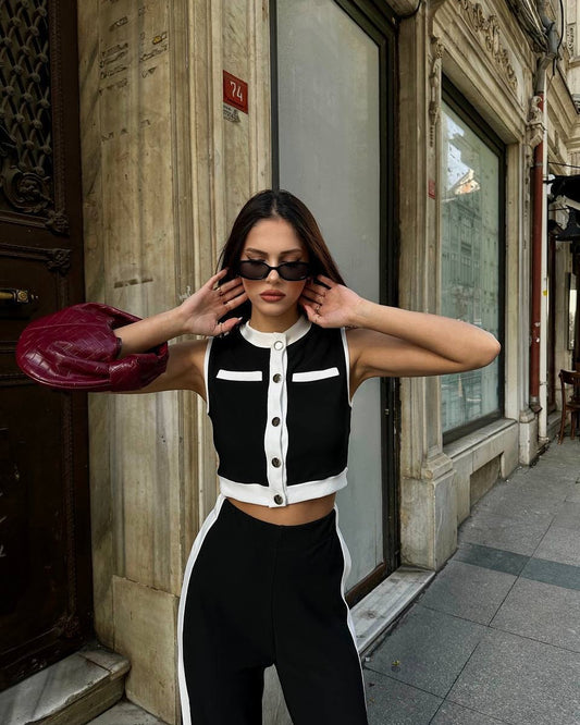 Contrast Trim Crop Top and Flared Pants Co-ord Set