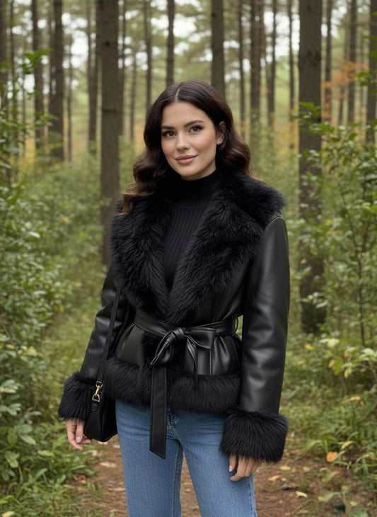 The Belted Faux Fur Trim Jacket