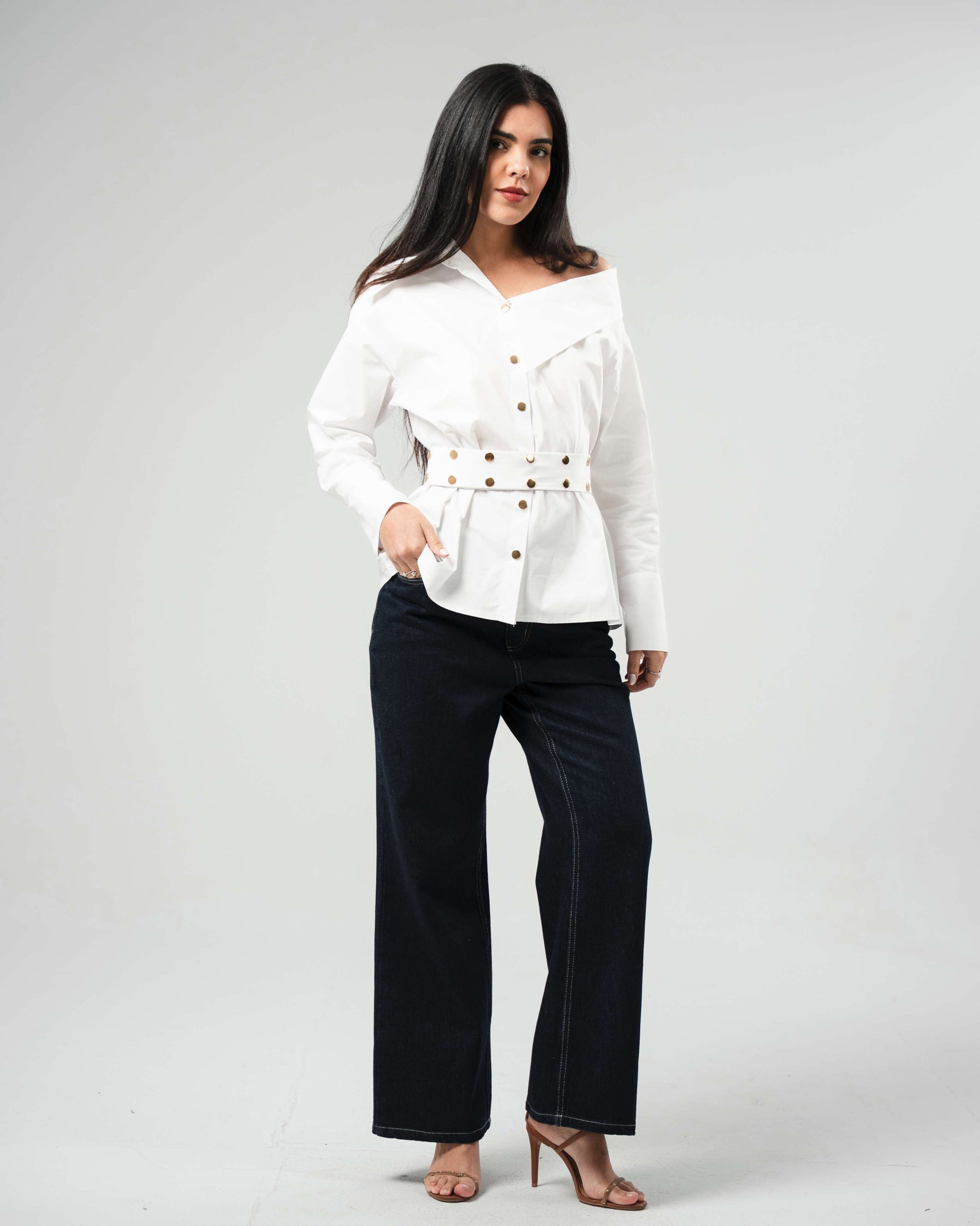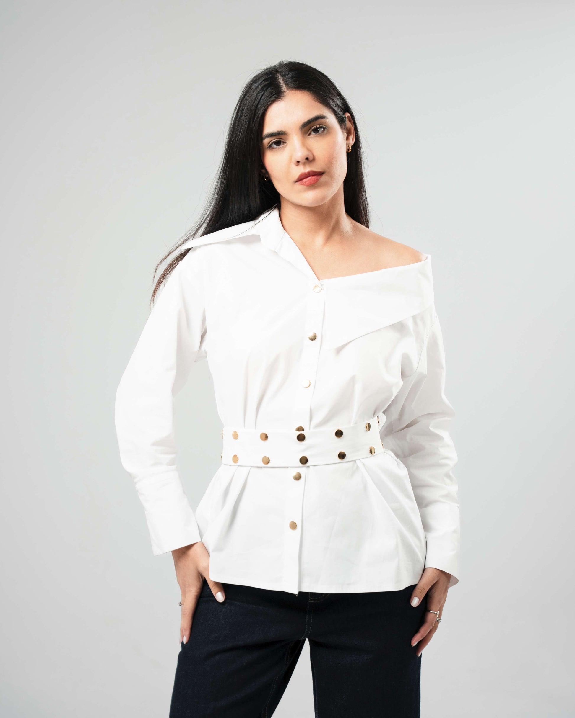 Get ready to turn heads with our Belted Peplum Shirt! This stylish top features a flattering peplum design and a chic belt to accentuate your waist. Perfect for both casual and dressy occasions, this shirt is a must-have addition to your wardrobe. (Buckle up for compliments!)