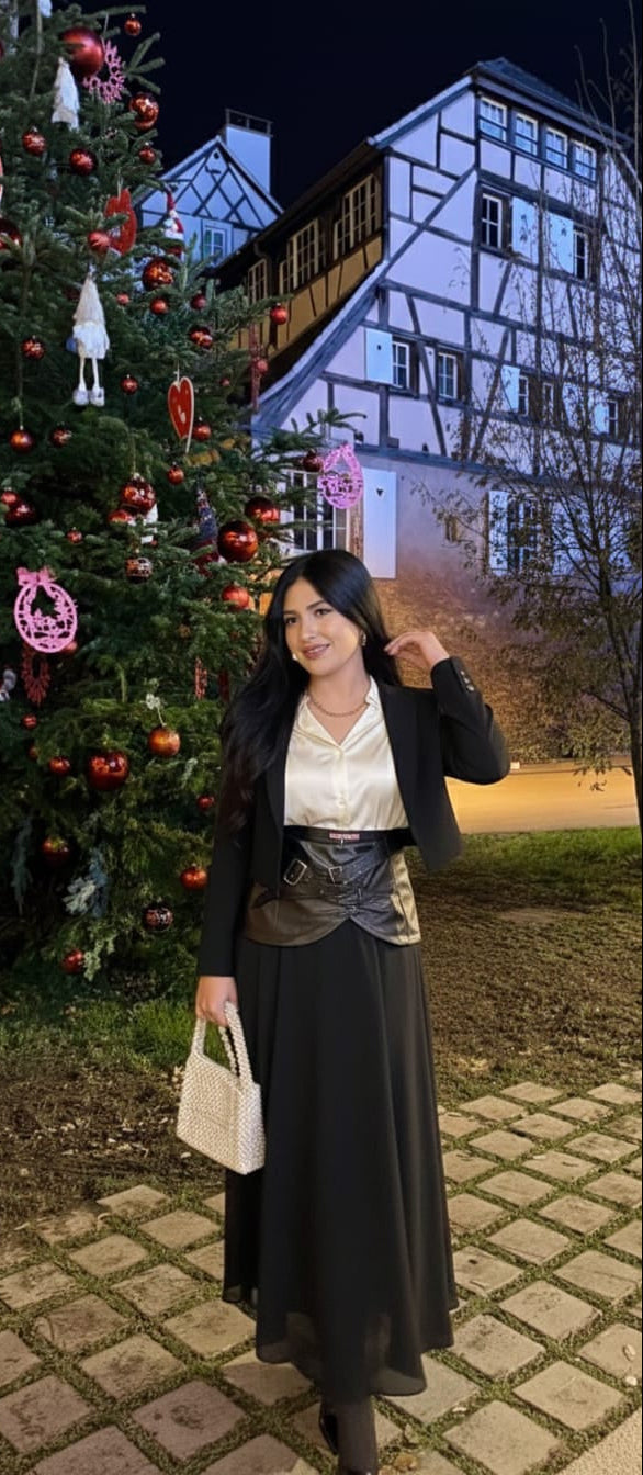 Edgy Fusion: Faux-Leather Buckled Corset Maxi Skirt