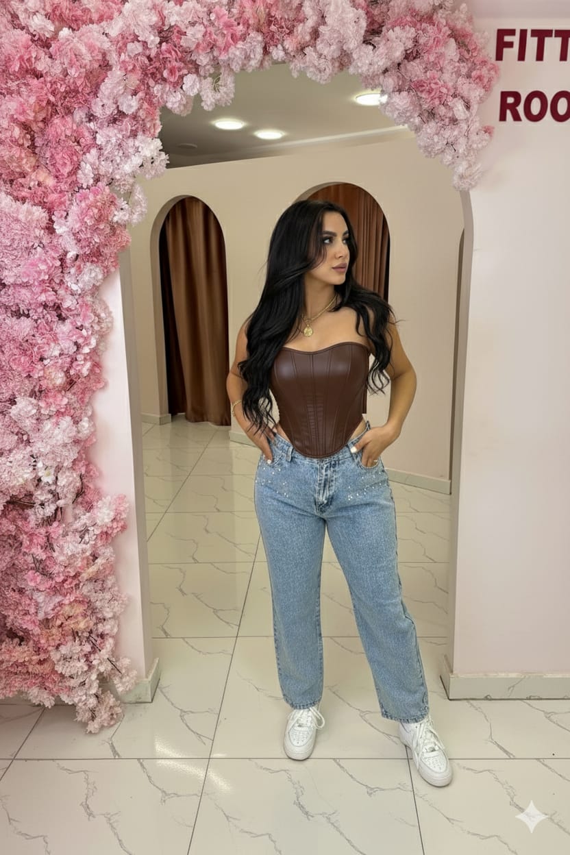 This sculpted faux leather corset cup combines edgy design with sparkling crystal embellishments, creating a bold statement piece. Perfect for those who want to turn heads and embrace a daring, confident style. Its structured shape enhances your silhouette while the crystals add a touch of fierce glamour.