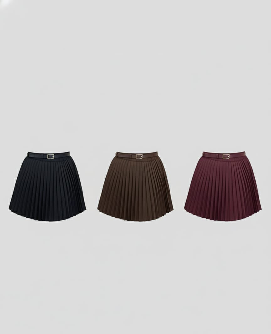 Own the moment in this daring pleated mini skirt that commands attention. Sharp, structured pleats create dynamic movement with every step, while the integrated belt cinches your silhouette for a bold, defined look. Perfect for those who refuse to blend in—pair it with confidence and watch heads turn. A fearless wardrobe essential that transforms any outfit into a statement.