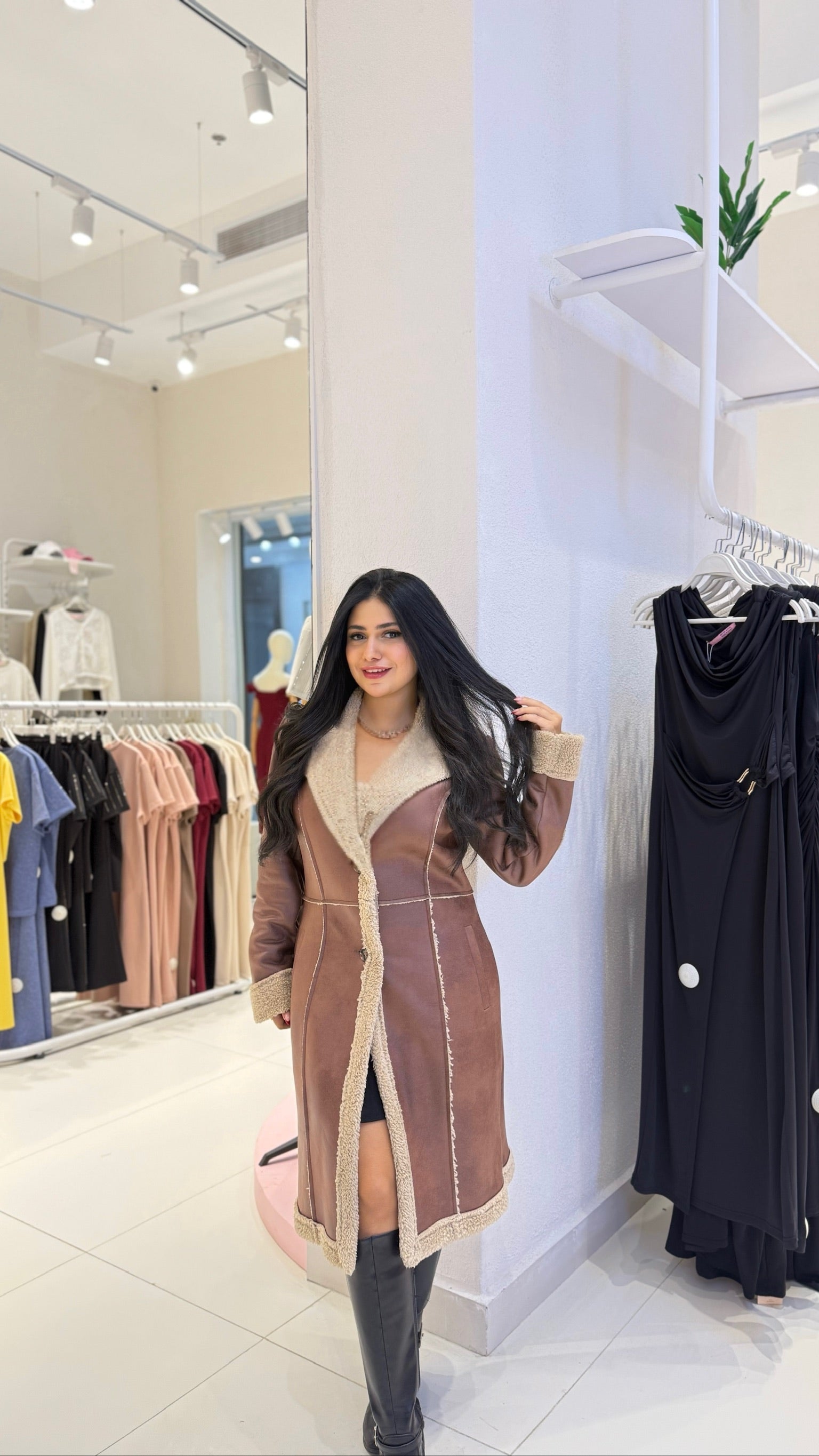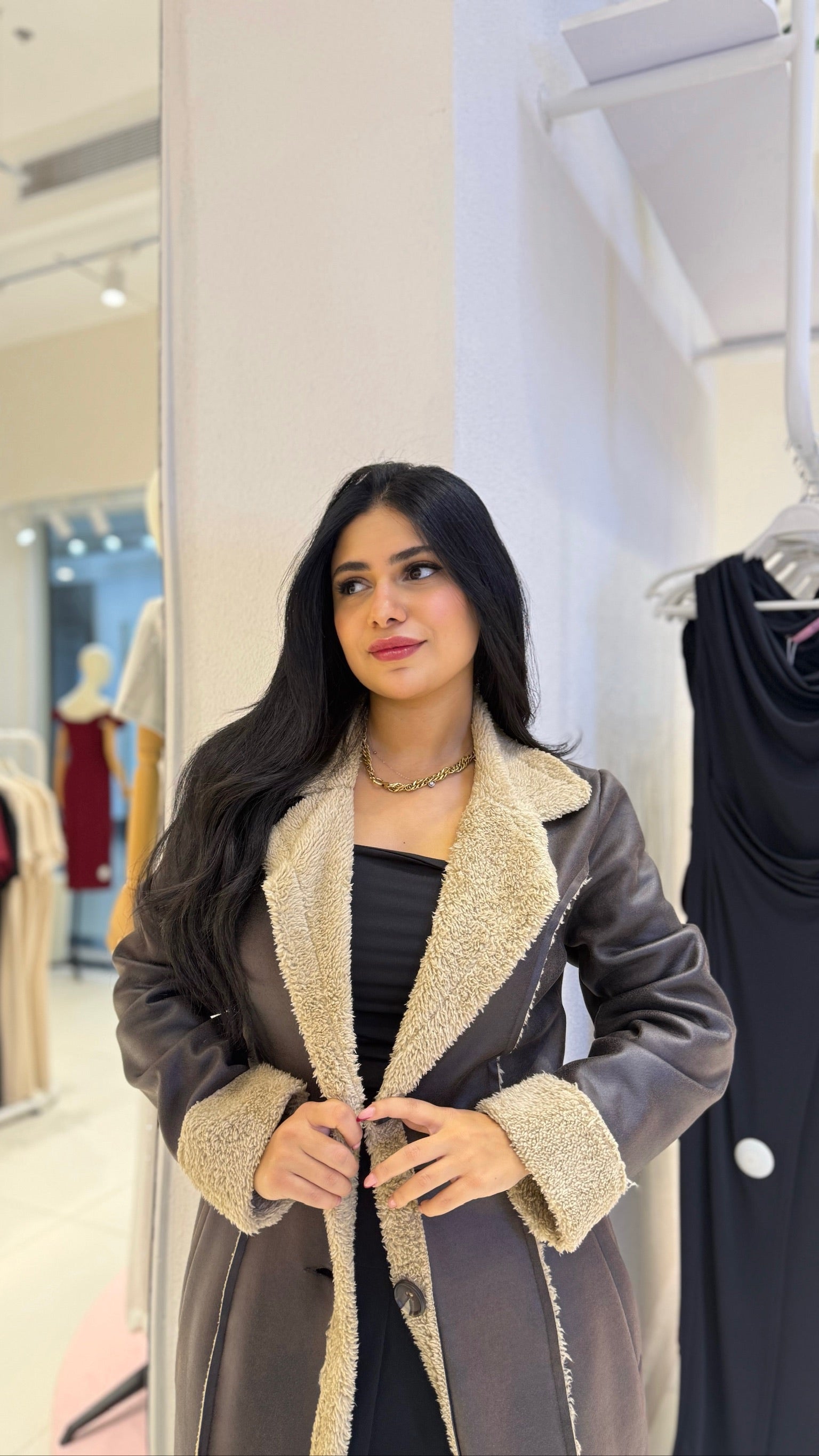 Women's Faux Suede Shearling Coat
